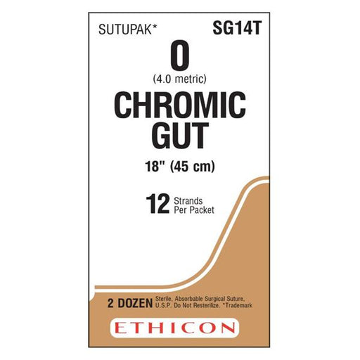 View full detailsProduct Description: Suture 0 Chromic Gut UR-6 27" Coated Absorbable Monofilament Brown 26mm 5/8 Circle Needle Taper Point Disposable 36/BoxPart Nu...