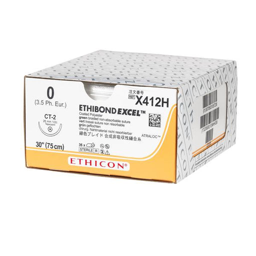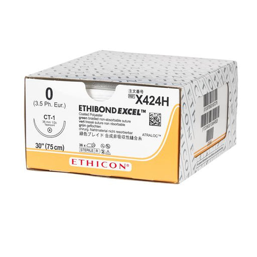 View full detailsProduct Description: Suture 0 Polyester CT-1 Ethibond Excel 30" Coated Non-Absorbable Braid Green 36mm 1/2 Circle Needle Taper Point Disposable 36/...