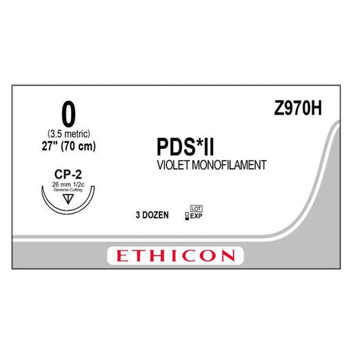 View full detailsProduct Description: Suture 0 Polydioxanone CT PDS II 27" Uncoated Absorbable Monofilament Violet 40mm 1/2 Circle Needle Taper Point Disposable 36/...