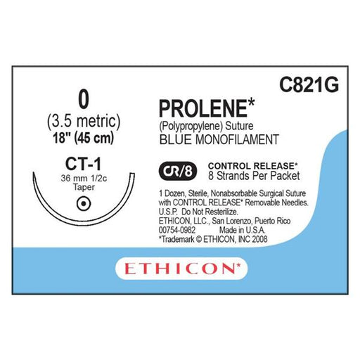 View full detailsProduct Description: Suture 0 Polypropylene CT-1 Prolene 18" Uncoated Non-Absorbable Monofilament Blue 36mm 1/2 Circle Needle Taper Point Disposabl...