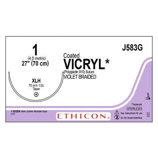 View full detailsProduct Description: Suture 1 Polyglactin 910 XLH Vicryl 27" Coated Absorbable Braid Violet 70mm 1/2 Circle Needle Taper Point Disposable BoxPart N...