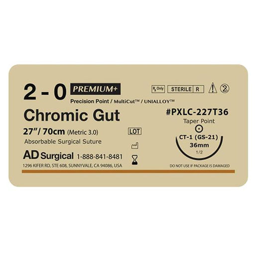 Product Description: Suture 2-0 Chromic Gut Unify 27" Coated Absorbable Monofilament Brown 36mm 1/2 Circle Needle Taper Point Disposable 12/BoxPart...