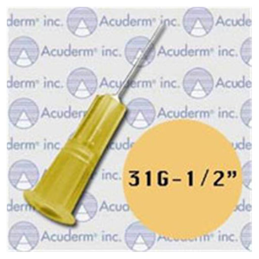 View full detailsProduct Description: Needle Luer Lock/ Luer Slip AcuNeedle 31g 1/2" Hypodermic Plastic Hub Tri-Beveled Sterile Not Made With Natural Rubber Latex D...
