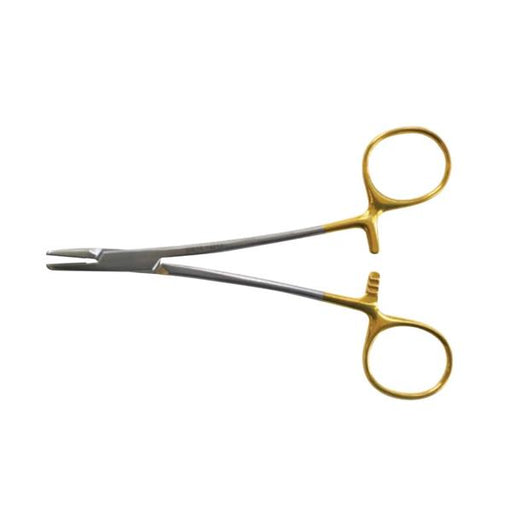 Product Description: Holder Needle Mayo-Hegar 5" Tungsten Carbide Gold Handle EachPart Number: BR24-18414 Color: Gold Handle Family Name: Mayo-He...