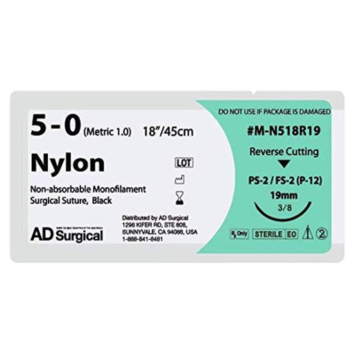 View full detailsProduct Description: Suture 5-0 Nylon FS-2 Unify 18" Uncoated Non-Absorbable Monofilament Black 19mm 3/8 Circle Needle Reverse Cutting Disposable 1...