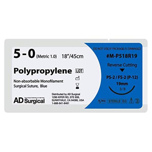 View full detailsProduct Description: Suture 5-0 Polypropylene 18" Uncoated Non-Absorbable Monofilament Blue 19mm 3/8 Circle Needle Disposable Medium 12/BoxPart Num...