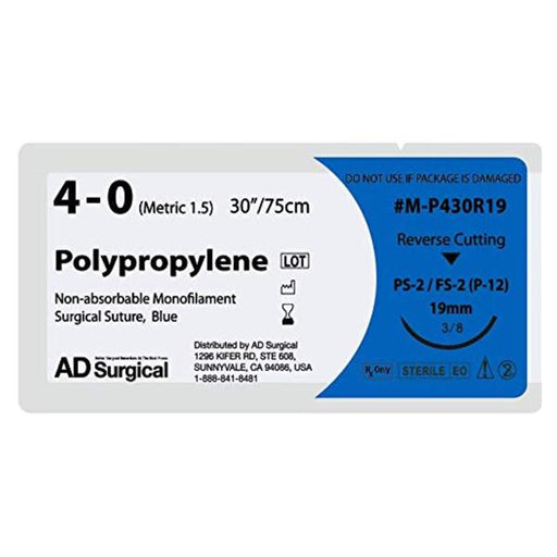 View full detailsProduct Description: Suture 4-0 Polypropylene 30" Uncoated Non-Absorbable Monofilament Blue 24mm 3/8 Circle Needle Reverse Cutting Disposable Large...
