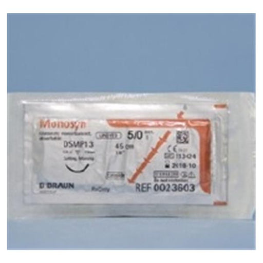 View full detailsProduct Description: Suture 5-0 Glyconate DSMP13 Monosyn 18" Uncoated Absorbable Monofilament Undyed 13mm 3/8 Circle Needle Micropoint Premium Reve...