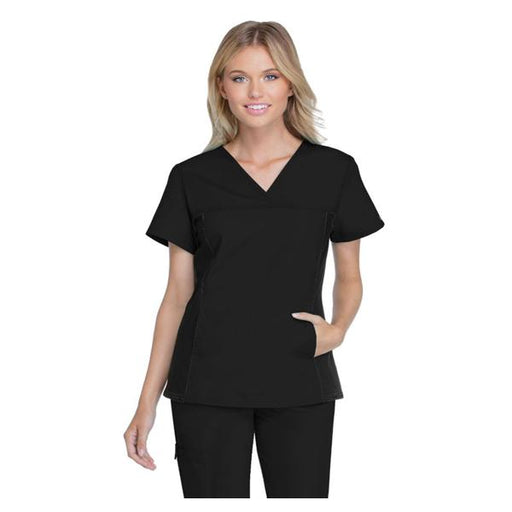 View full detailsProduct Description: Shirt Scrub Luxe 51% Polyester / 46 % Rayon / 3% Spandex Twill Adult Womens Black Mock Wrap Neck Pull Over Non Reversible 3 Po...