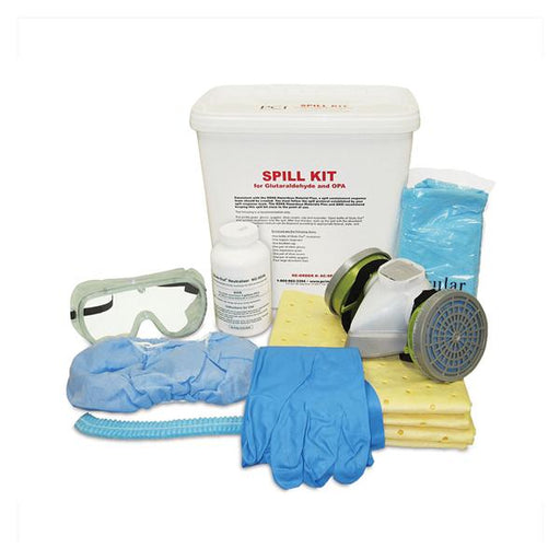 View full detailsProduct Description: Kit Spill For Glutaraldehyde/OPA Disposal With Glute Out Neutralizer/Respirator/Shoe Covers/Goggles/4 Absorbent Mats/Bucket/Gl...