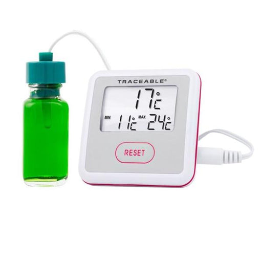 View full detailsProduct Description: Traceable Memory Monitoring Plus Laboratory Thermometer ABS Plastic -50 to 70°C 3-1/4x5/8x2-1/2" Sealed Bottle Probe Min/Max M...