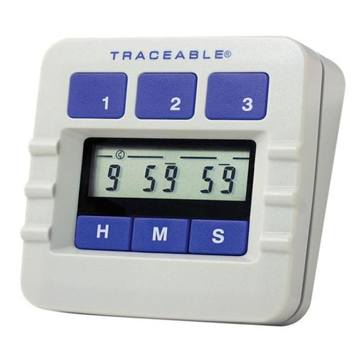 View full detailsProduct Description: Traceable 3-Channel Timer 3-1/4x3x1" ABS Plastic 99 Hours, 59 Minutes, 59 Seconds Audible Alarm LCD Battery ISO 17025, A2LA, N...