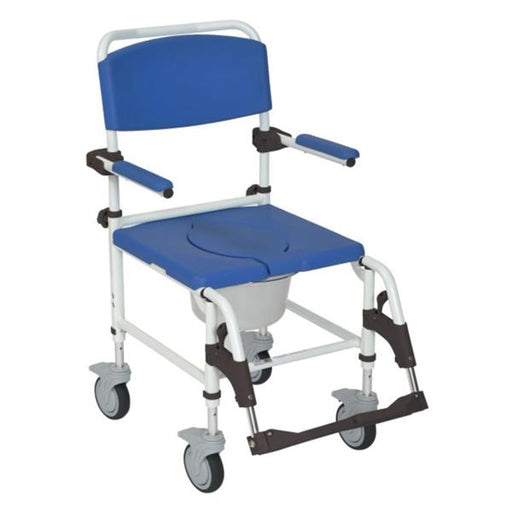 View full detailsProduct Description: Chair Shower/Commode Rehab 275lb Capacity Blue/White 4 Rear Locking Casters 22.25x39-41" Adult Aluminum Plastic Seat Padded Ba...