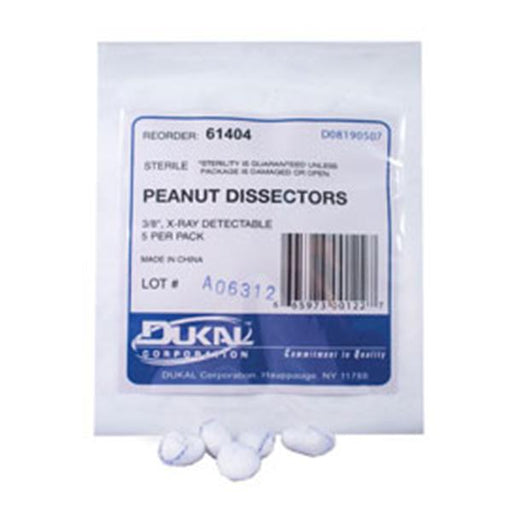 View full detailsProduct Description: Sponge Peanut 100% Cotton 3/8" Absorbent 5's X-Ray Detectable Sterile Not Made With Natural Rubber Latex Disposable 40Pk/CaseP...