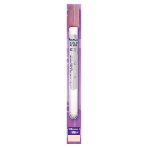 View full detailsProduct Description: Tube Venous Blood Collection Vacutainer Plus PST K2 EDTA 10.8mg 16x100mm 10mL Rubber Stopper Pink Disposable Not Made With Nat...
