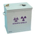 Product Description: Shield Sharps Monoject Small/Medium Steel/Lead/Powder-Coat Finish 9.19x15-1/4x13.31" Key-Locked Side Handles Sliding Port Top For 039-387 Containers Non-Sterile Reusable Red/White Each